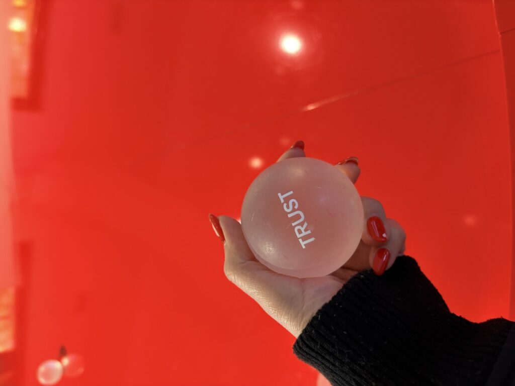 体験型展示もあって、いろんなワードが書かれたボールを穴に落とすゲーム?みたいなのありました。