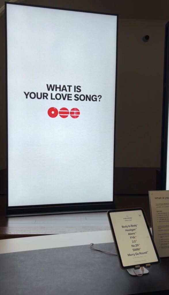 新世界デパートのポップアップは「気軽に立ち寄って楽しめる展示+ショップ型」、HYBE本社のポップアップは「世界観にしっかり没入できる体験型」という違いがあります。