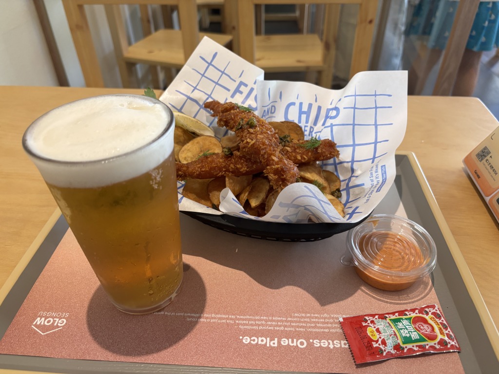 今回はフィッシュ&チップスとビールをオーダーしました。