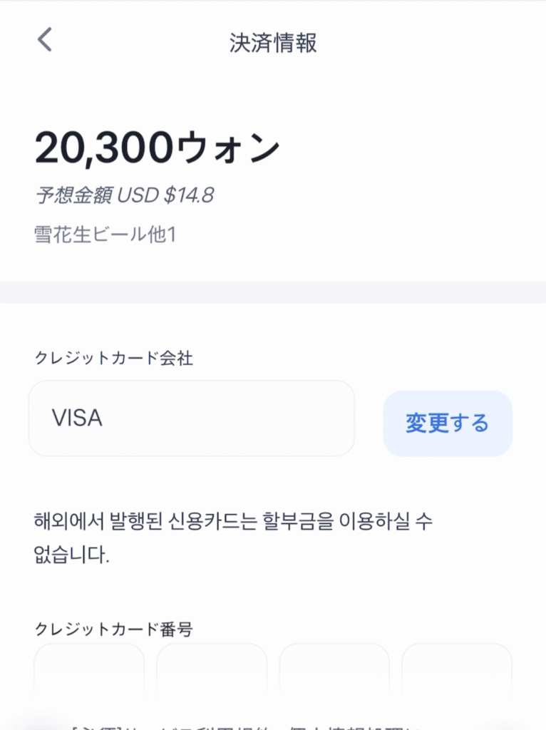 2回聞かれるので、同じものをいれて、右をクリックすると、クレカ情報に進みます。
