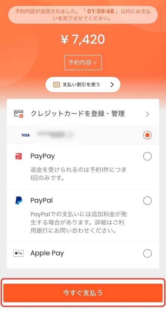 支払方法は、クレジットカードやPayPay、Paypalなどが使えます。
