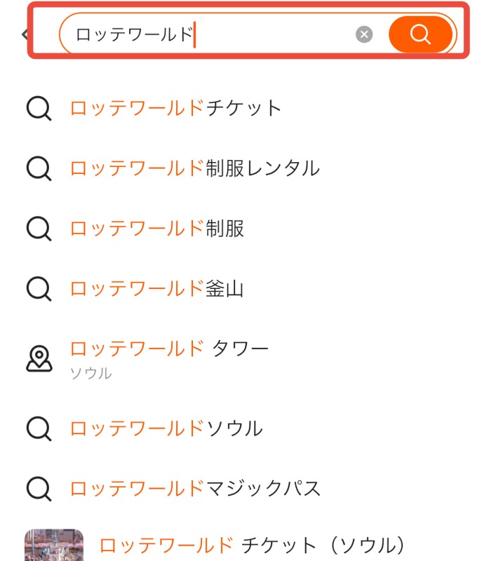まずはKlookのアプリまたは公式サイトを開き、検索窓に「ロッテワールド」と入力します。