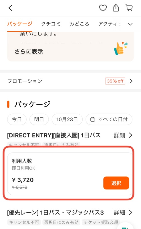 これらのサイトは常にプロモーションを行っているため、購入前に必ずキャンペーンページやクーポン情報をチェックしましょう。当日券売場に並ぶ時間も節約でき、Eチケット(スマホ画面)を見せるだけでスムーズに入場できるのも便利!